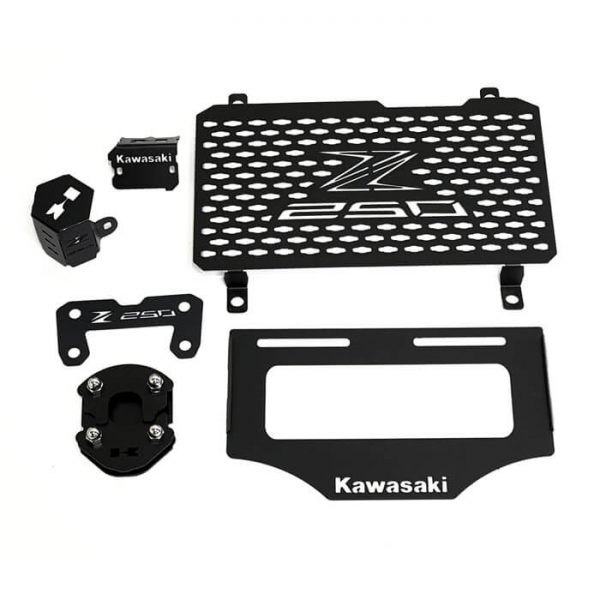 Este kit de lujo cuenta varios accesorios fabricados en acero inoxidable y pintura electrostática, para mejorar notablemente el aspecto de la motocicleta y ademas brindando protección adicional contra impactos o partículas que puedan afectar los diferentes componente de la moto.