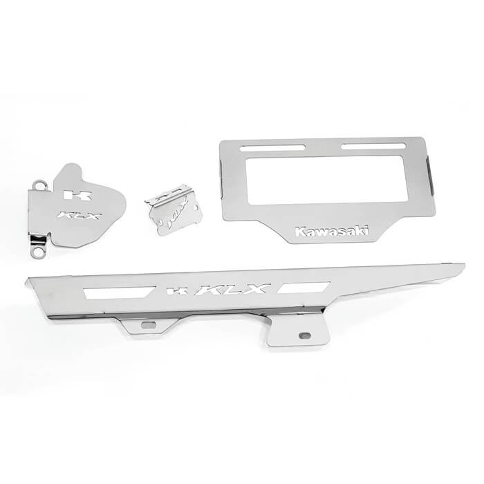 El kit de lujo para Kazasaki KXL cuenta con varias piezas fabricadas en acero inoxidable, para mejorar notablemente el aspecto de la motocicleta y ademas brindando protección adicional contra impactos o partículas que puedan afectar los diferentes componente de la moto.