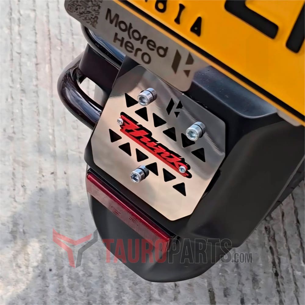 Añádele un toque de elegancia y distinción a tu motocicleta con esta pieza de lujo en acero que se le incrusta en el guardabarros de la llanta trasera.