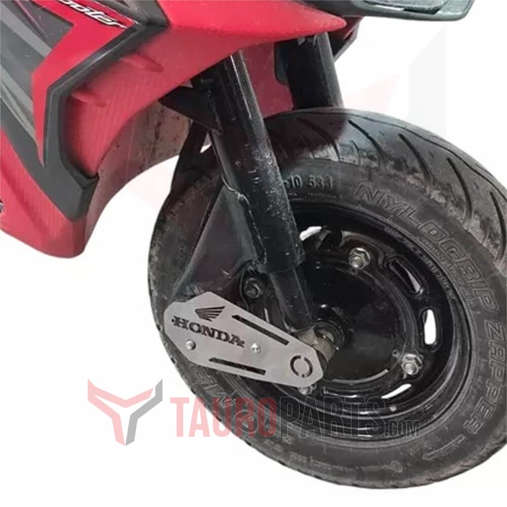 El protector de caliper delantero es un artículo de protección y seguridad que evita que el caliper sea tocado en caso de partículas lanzadas por el movimiento de la rueda o caída.