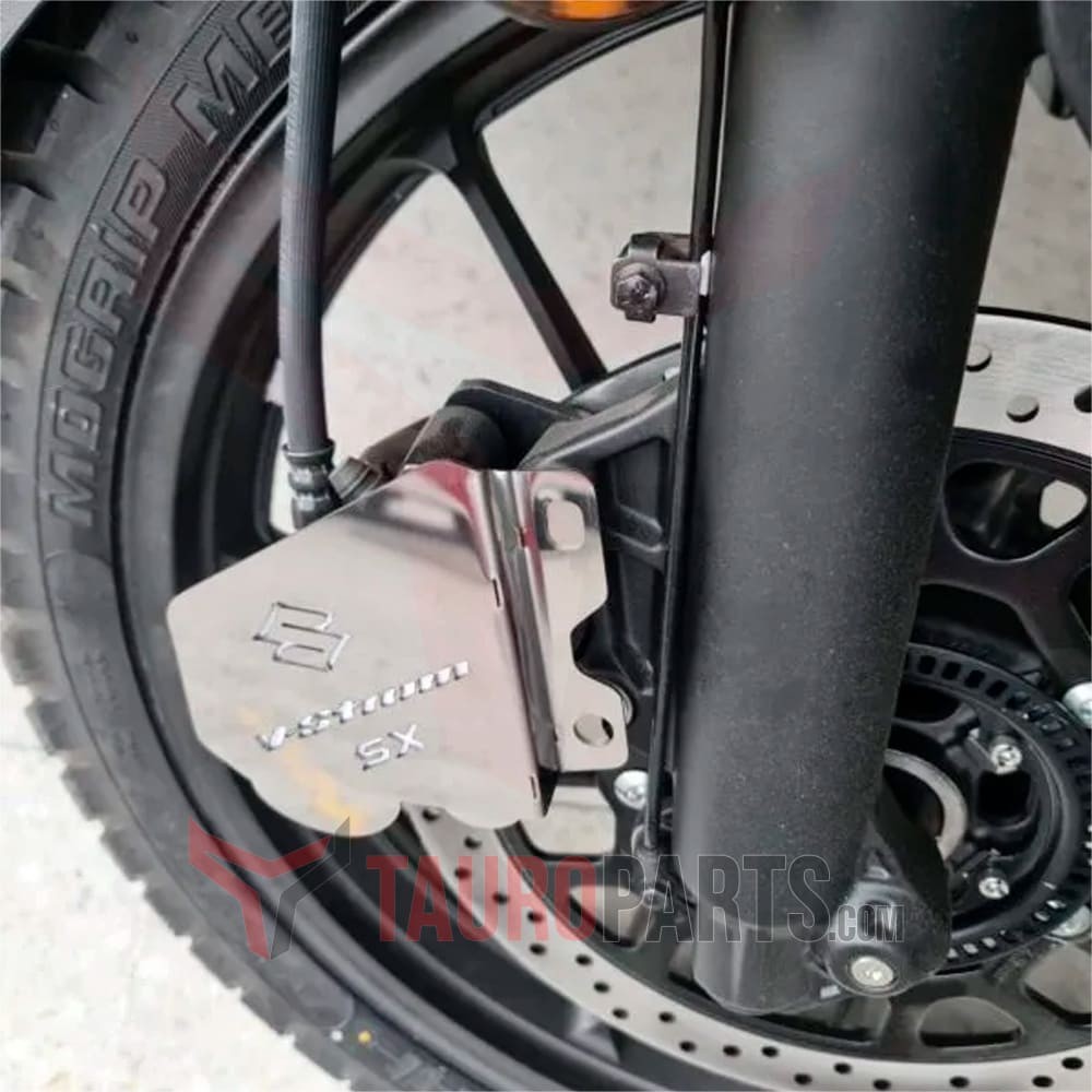 El protector de caliper delantero, es un artículo de protección y seguridad que evita que el caliper sea tocado en caso de partículas lanzadas por el movimiento de la rueda o caída.