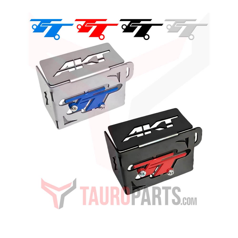 El protector previene la manipulación de la tapa evitando que puedan robarla y en adición evita que el tarro de líquidos pueda romperse al entrar en contacto con alguna roca o elemento que pueda ser disparado por la rueda trasera previniendo una posible falla en el sistema de frenos de la moto.