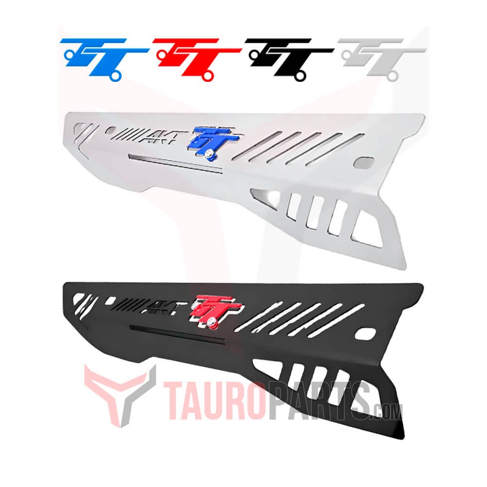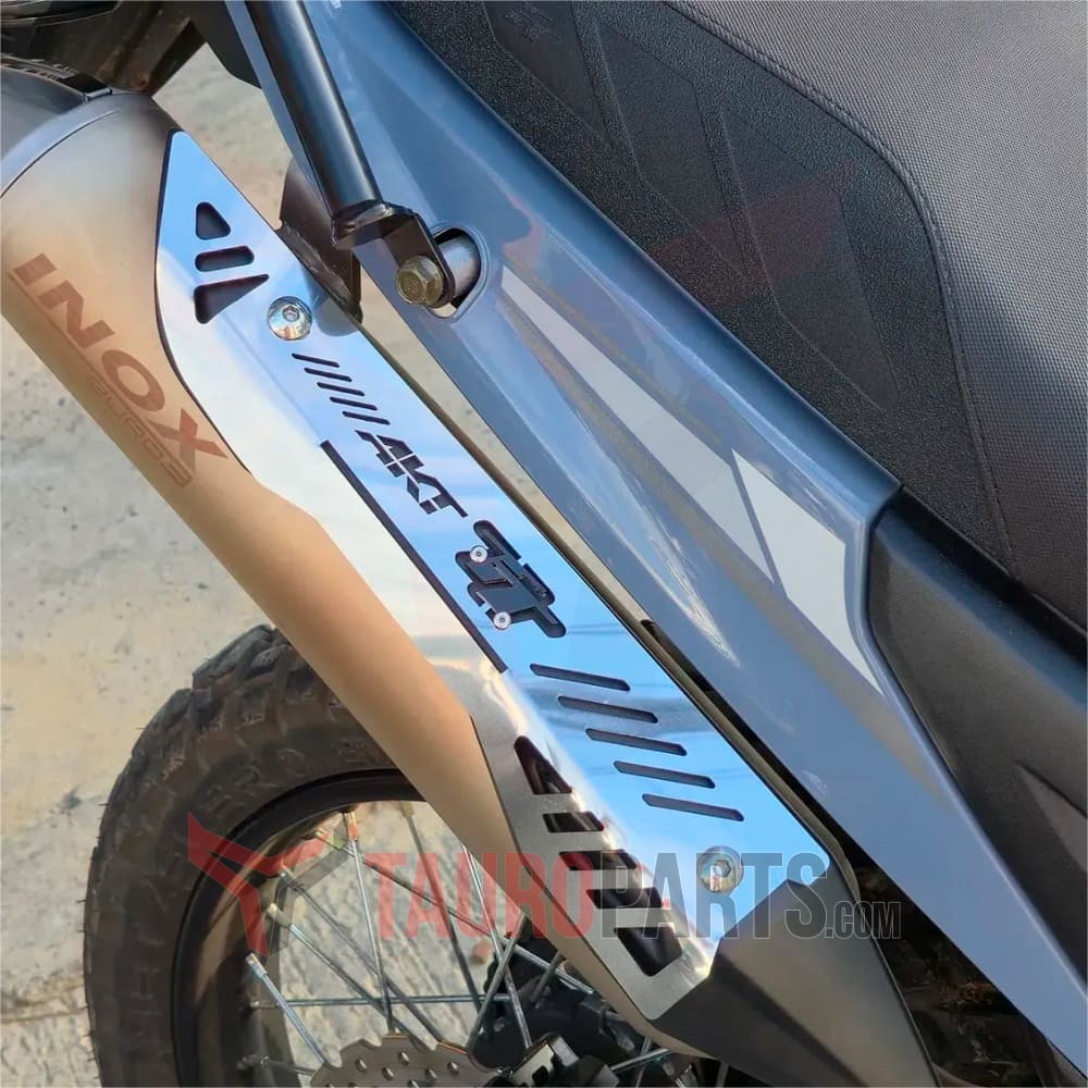Esta pieza en acero inoxidable que se incrusta en el exosto, sirve par proteger de golpes y rayones, y al mismo tiempo le añade un toque de elegancia y distinción a tu motocicleta.