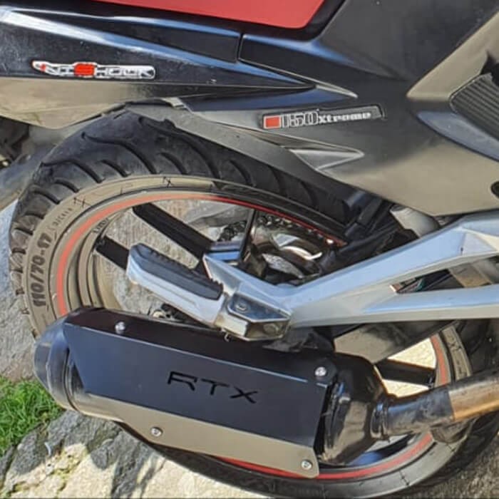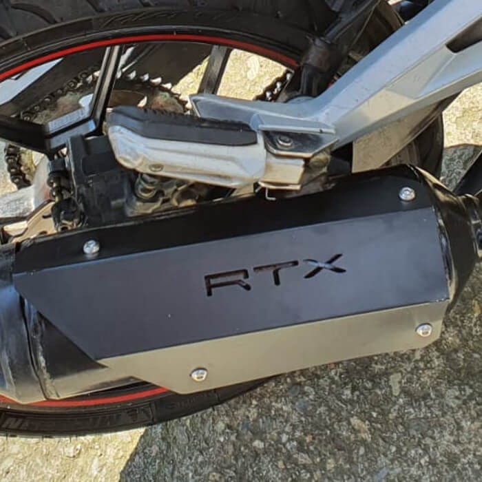 Esta pieza en acero inoxidable que se incrusta en el exosto de la AKT RTX, sirve par  proteger de golpes y rayones, y al mismo tiempo le añade un toque de elegancia y distinción a tu motocicleta.